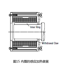 NU型、NJ型圆柱滚子轴承的内圈拆卸可以利用感应加热法。这种方法是在短时间内加热局部,使内圈膨胀后拉拔的。(图15)需要批量安装这类轴承内圈时,也使用感应加热法。
